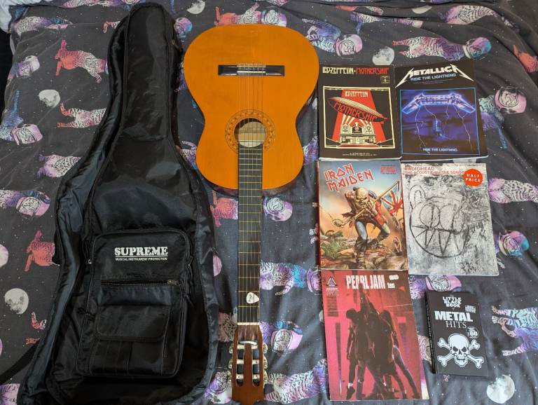 Recently restrung with D'Addario Nickel Bronze 12-53 gauge strings