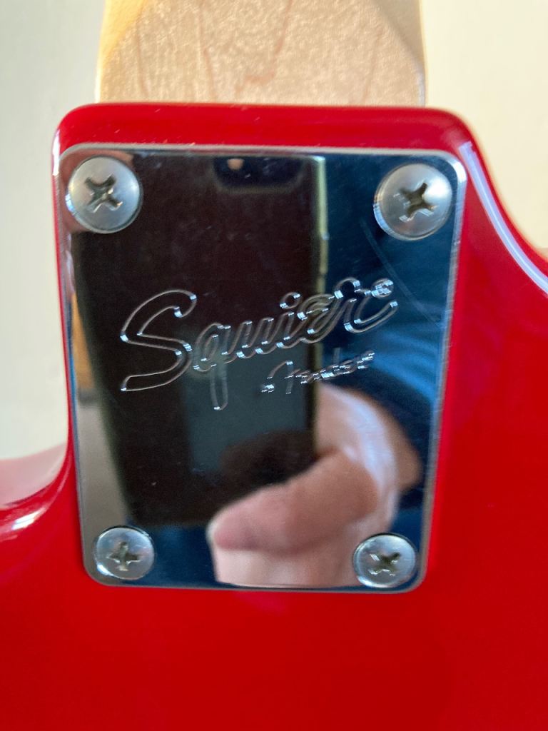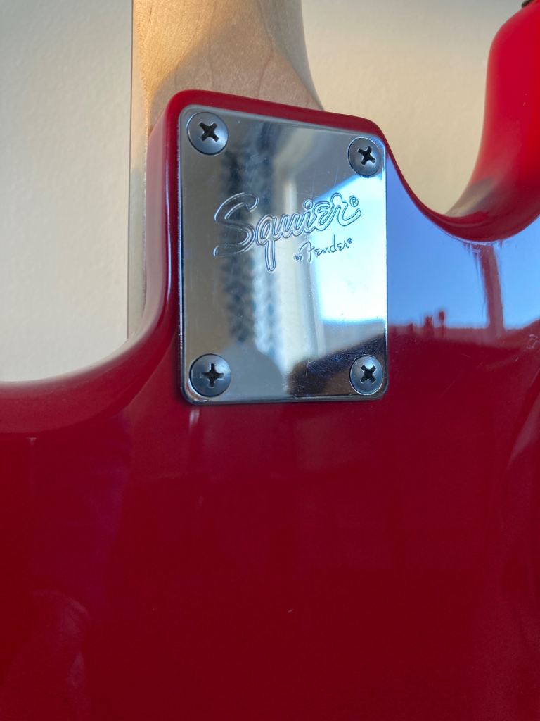 Good condition Squier by Fender electric guitar in red. Affinity series.