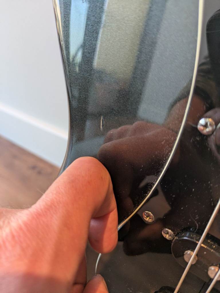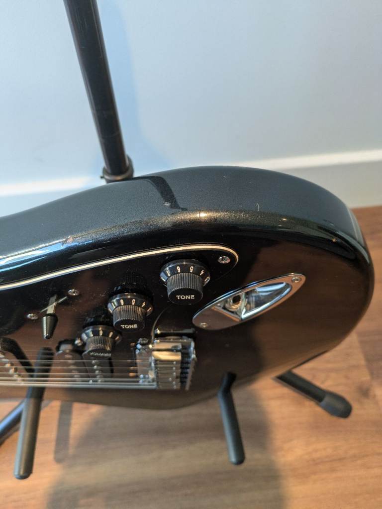 The electronics are perfect. It has a few battle scars/nicks (see close-up photos), but nothing that affects the playability. It’s an honest, solid guitar that sounds great.