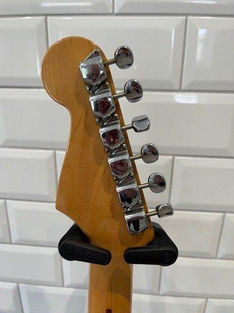 The bridge has been changed for a Fender bridge and the scratchplate is not the original.