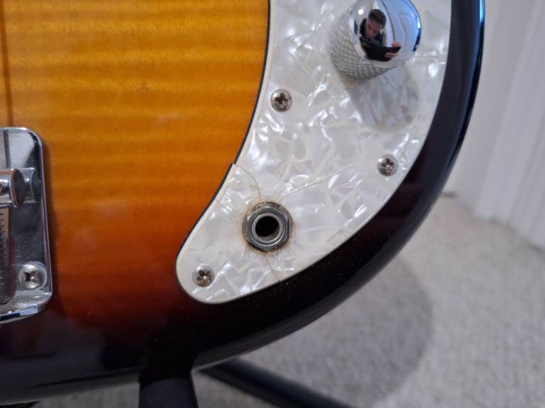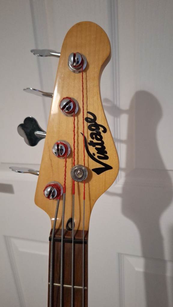 Vintage bass guitar, stand, tuner, cable and carry case. The guitar worked fine when last used, you're welcome to test it with an amp before buying. Some slight cosmetic damage around jack input and guitar stand.