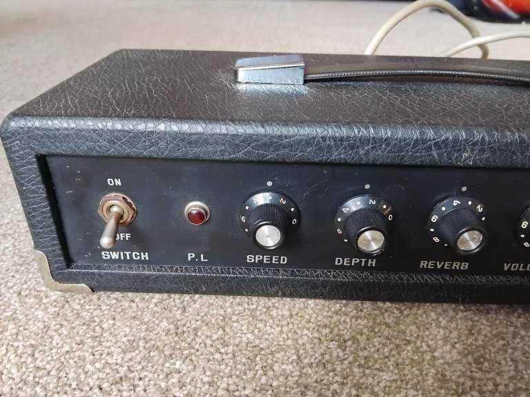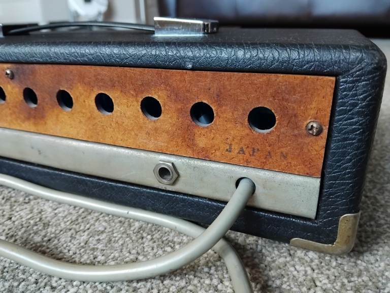 A lovely piece of vintage guitar equipment made in Japan in the 1960s. This is a solid state amplifier coupled in full working order. The Depth control is a bit scratchy when moved but it works fine.