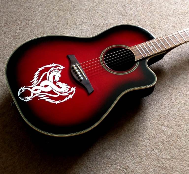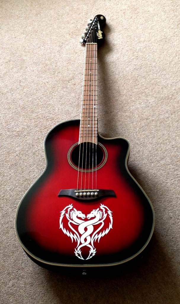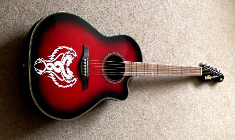 Vintage VR6 Synergy Electro acoustic guitar in Ruby Red Burst in excellent condition, with factory fitted Fishman ISYS Preamp system with built-in tuner. Please let me know if interested. CASH ON COLLECTION ONLY ... WONT POST OR DELIVER, NO TRADES, THANKS