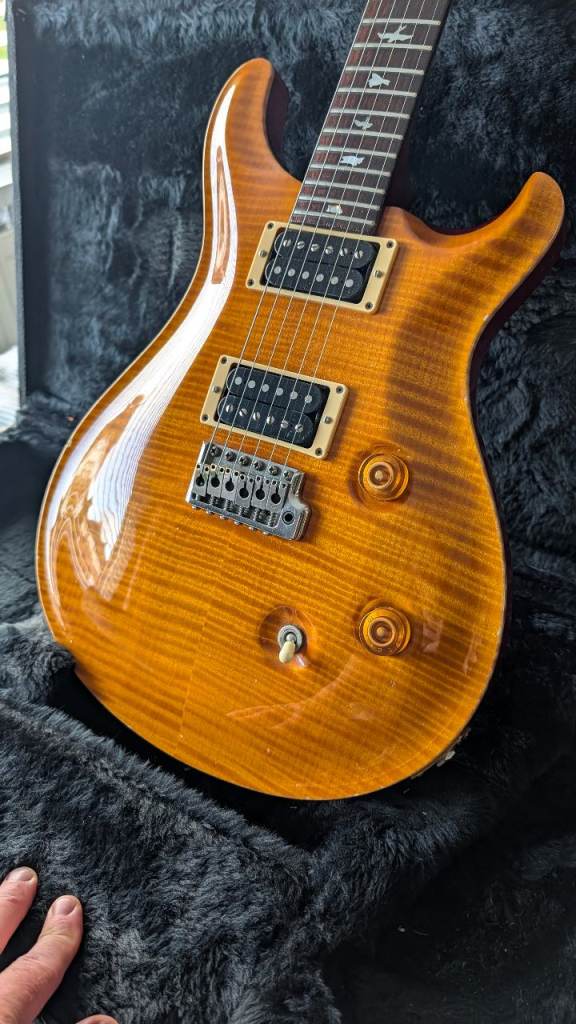 For sale is my Vintage Amber "10 Top" 1993 PRS Custom 24 in beautiful, almost original condition. This is an early Maryland‑built Core model, built during PRS’s golden era — when every instrument was hand‑crafted with superb attention to detail.