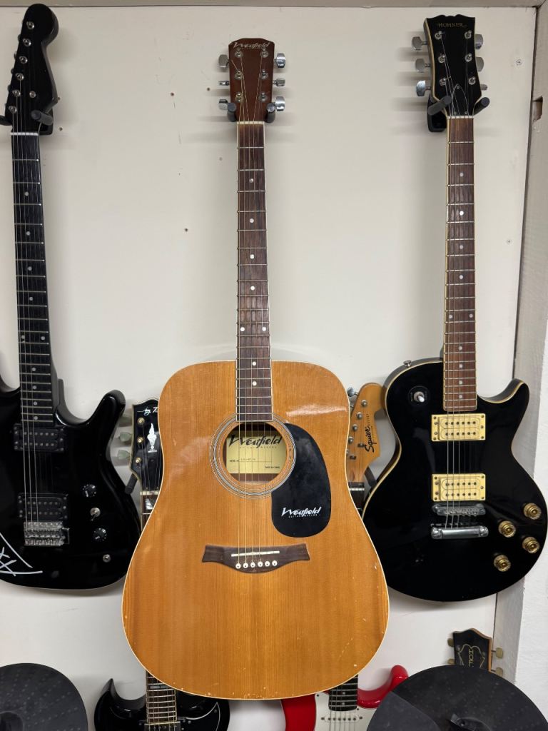 In fantastic condition for its age with no major issues. just a bit of tarnishing and play wear. Frets are all good. Finish is lovely with just the odd bit of "spotting" here and there and the odd tint ding around the edges. It would be very hard to find a nicer one from this era at this price! Also the Original case is looking a bit worn and 1 latch is broken, but it still functions in protecting the guitar.
