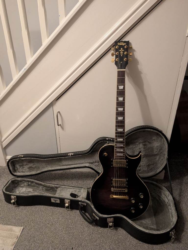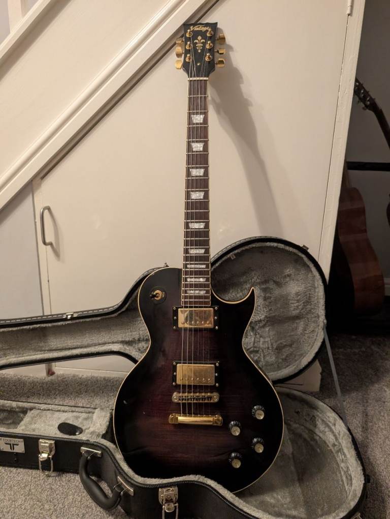 Posting for 11+ monthsVintage V100 Pro Shop Electric Guitar Purple Flame Burst & Hard Case