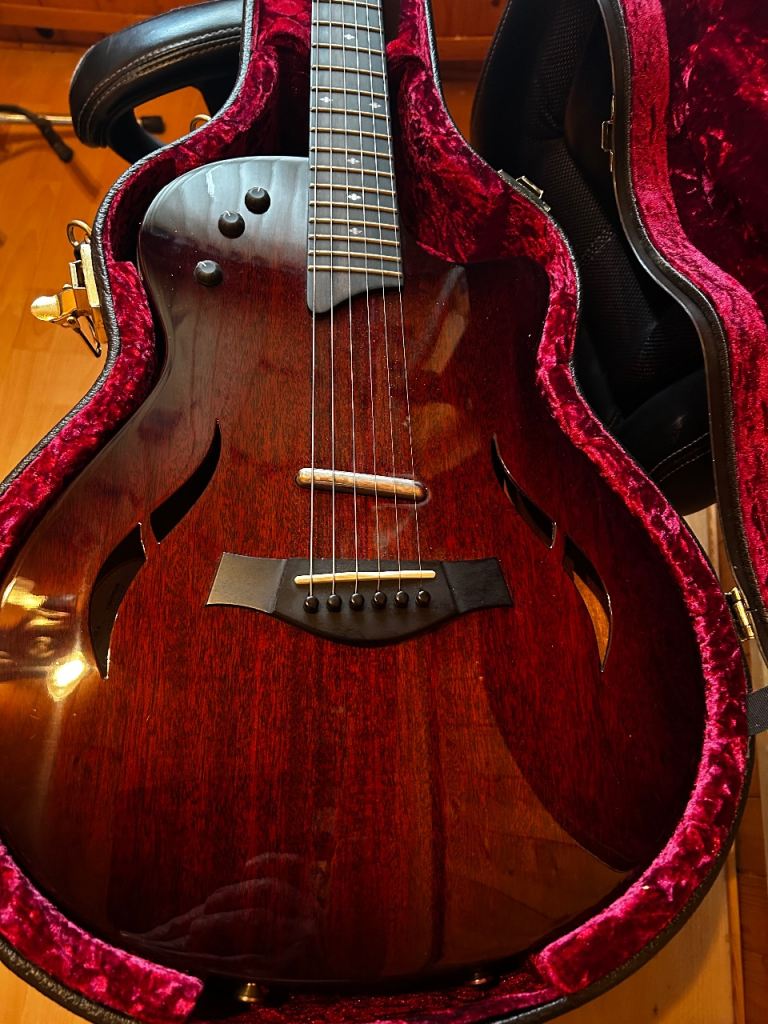 Decent preamp / tuner built in, with line and XLR outputs, ideal for open mics, busking etc.
