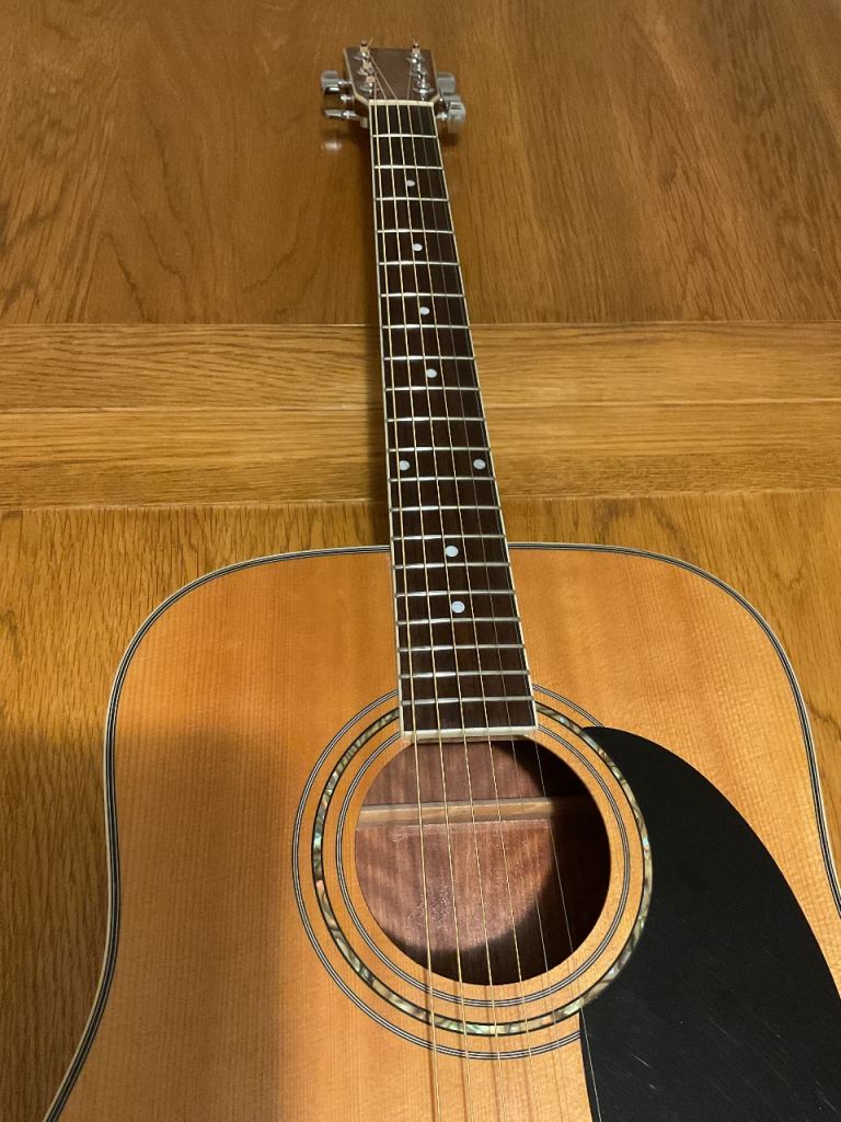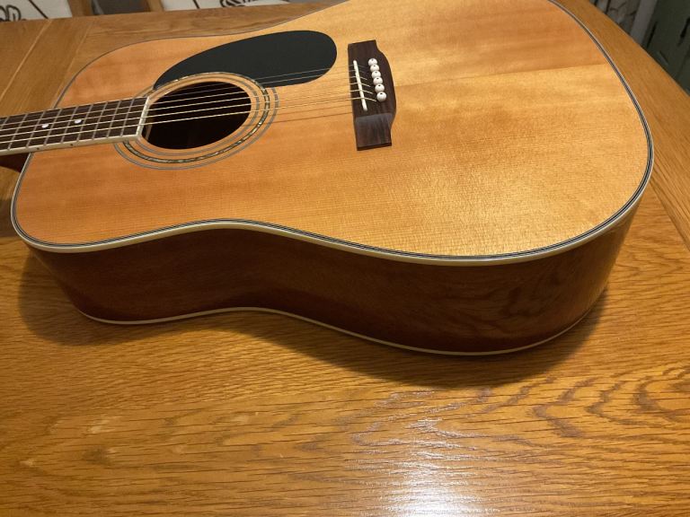 This would be a perfect guitar for a beginner or someone getting back into playing, it’s very easy to play and in great condition. It could also be a great second guitar for a more experienced player or one to take to parties, camping etc. It comes with a gig bag and stand.