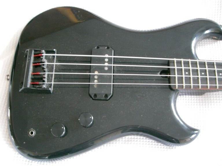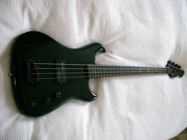 Black paint to all but fretboard. Some fret wear as you might expect on a bass of this age.
