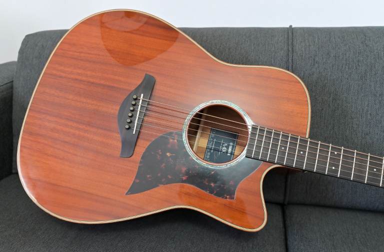 - All solid wood cutaway dreadnought guitar body made up of Koa wood.