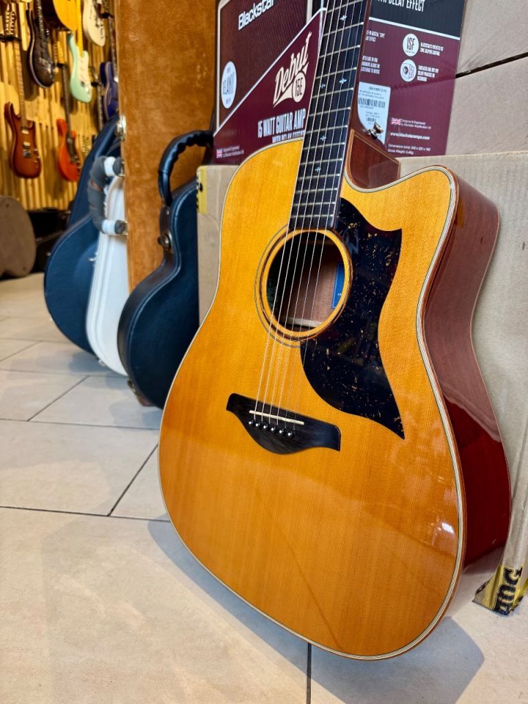 The A5M ARE, traditional western body cutaway guitar, features all-solid mahogany back and sides with hand-selected sitka spruce top with Yamaha's original A.R.E. wood-torrefaction technology. Natural, dynamic plugged-in tone from the SRT2 pickup system perfectly suit your performance on the stage and the made-in-Japan premium build quality will gratify advanced players' desire.
