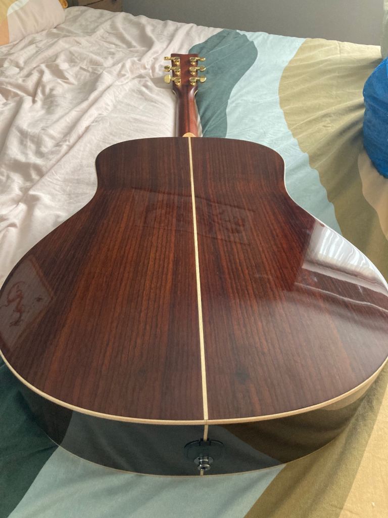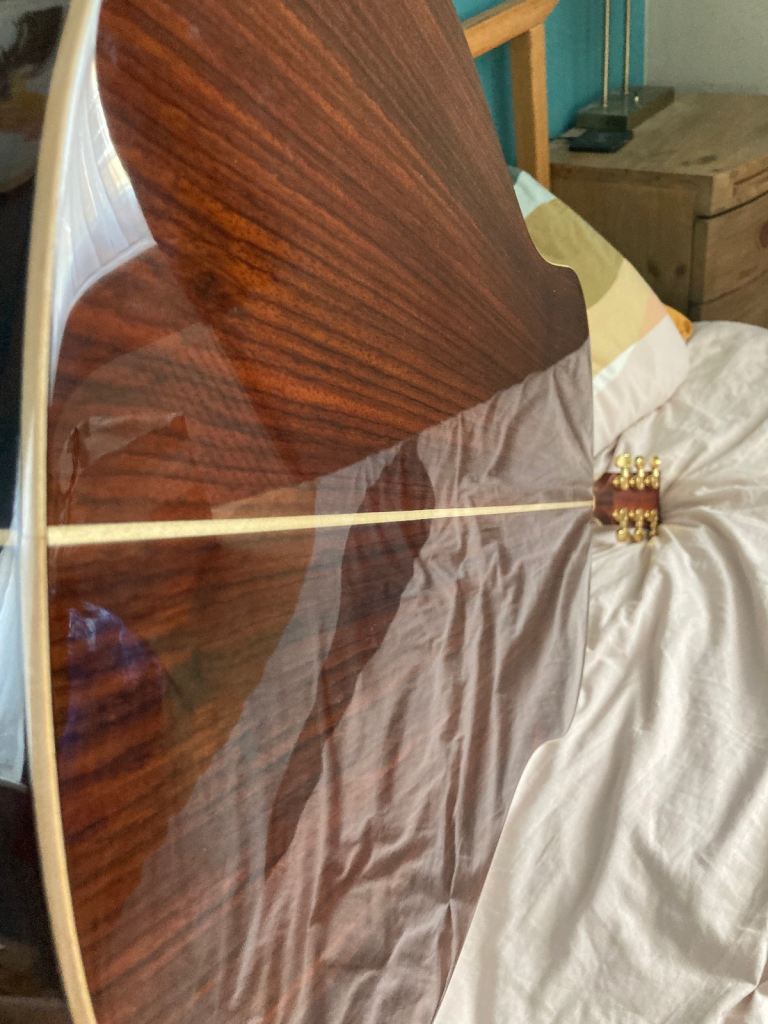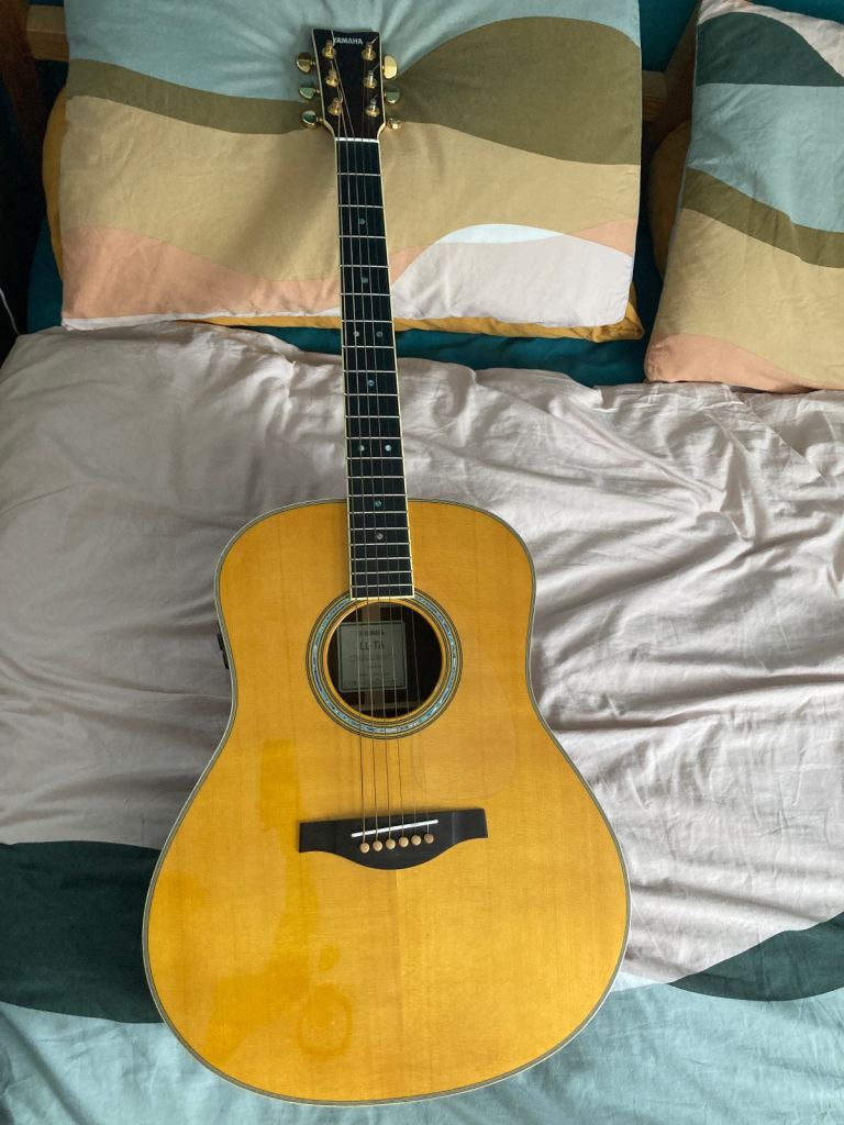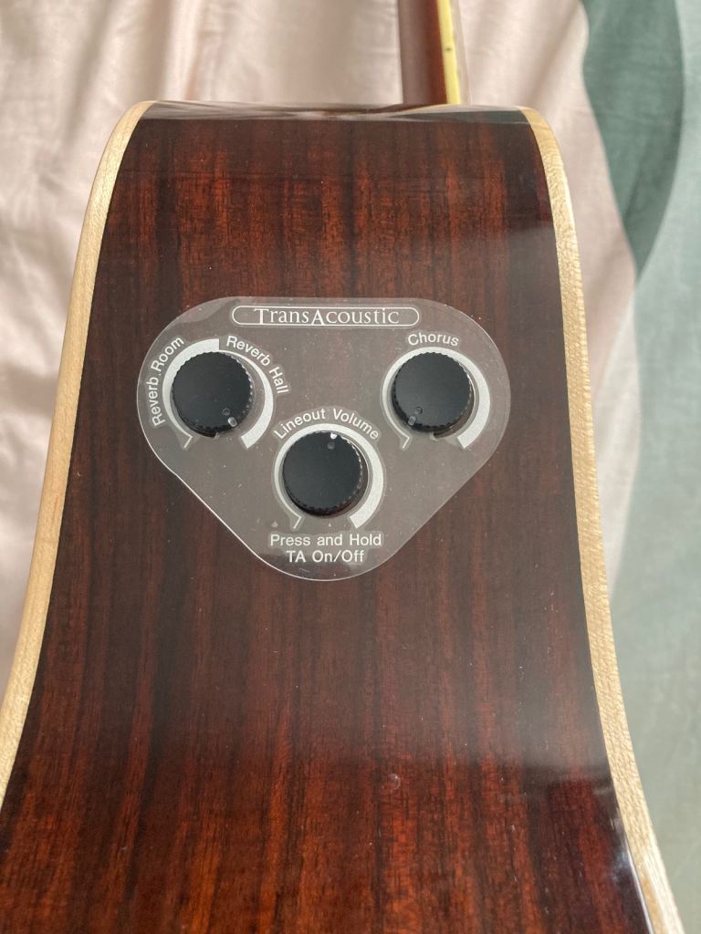 Wonderful solid wood dreadnaught (Engleman Spruce top, Rosewood back/sides) guitar for sale. Part of Yamaha’s ‘Transacoustic’ range complete with original gig-bag & paperwork. This is a great guitar, still retails new at around £1000 or just under, look it up on Andertons or Guitar Guitar website for full specs and it plays beautifully, plugged in or acoustic. If you are aware of these ‘transacoustic’ guitars you’ll know how unique they are, this is no ordinary guitar! With built chorus & reverb effects which are projected, unamplified, as if by magic, straight from the sound hole! The effects sound great and you’ll confuse & amaze your friends at the push of a button! Effects work just as well when plugged in too. Guitar is in immaculate condition and has been cherished since purchased, it’s never been gigged and stored very carefully. Fitted with gold tuners, which are very stable and its original gig-bag, which hasn’t a scuff on it either. This is a reluctant sale as this was my dream guitar when bought, but need to downsize collection. No trades, not posting it or sending by courier, collection only. I won’t respond to ridiculous offers. Thanks for looking.
