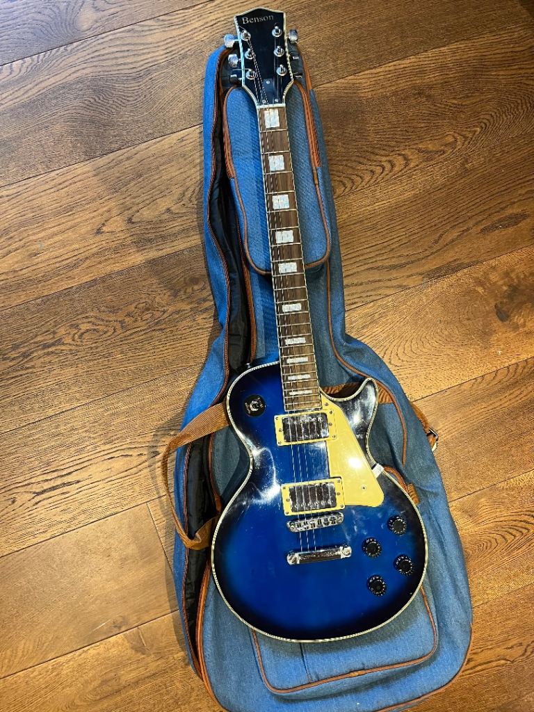 Overall, this blue Benson Les Paul–style electric guitar combines classic inspiration with modern style, making it a versatile and visually striking instrument for players who want both looks and sound in one package.