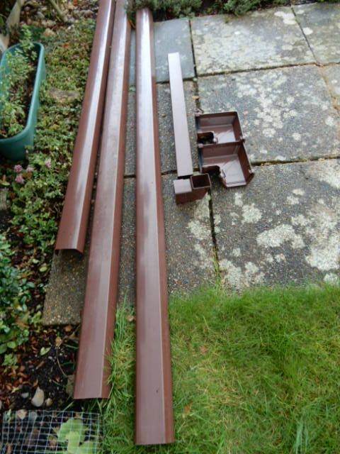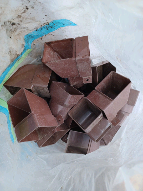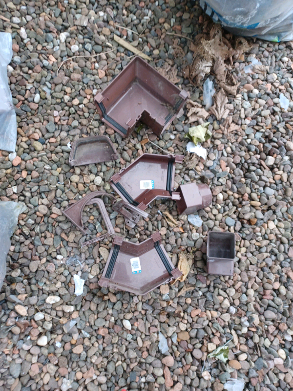 BRAND NEW PARTS, REDUCED PRICE......Brown colour O'gee shape gutter parts, running outlets, external 90 degree bends, gutter clips, outlet shoes, 45 degree bends, stop ends, etc