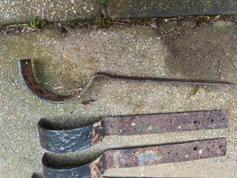 Vintage metal guttering holders removed from old shed