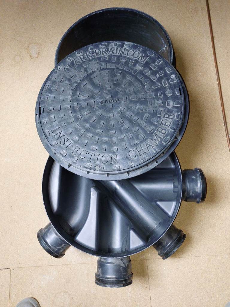 Inspection Chamber Set - includes Inspection Chamber with 5 inlets 47cm Diameter, a large Riser and a Round Cover. All are quality products (Clark Drain Company). Brand New, Never Used, No wear or damage. to collect from Leyburn, North Yorkshire. Full Set £40