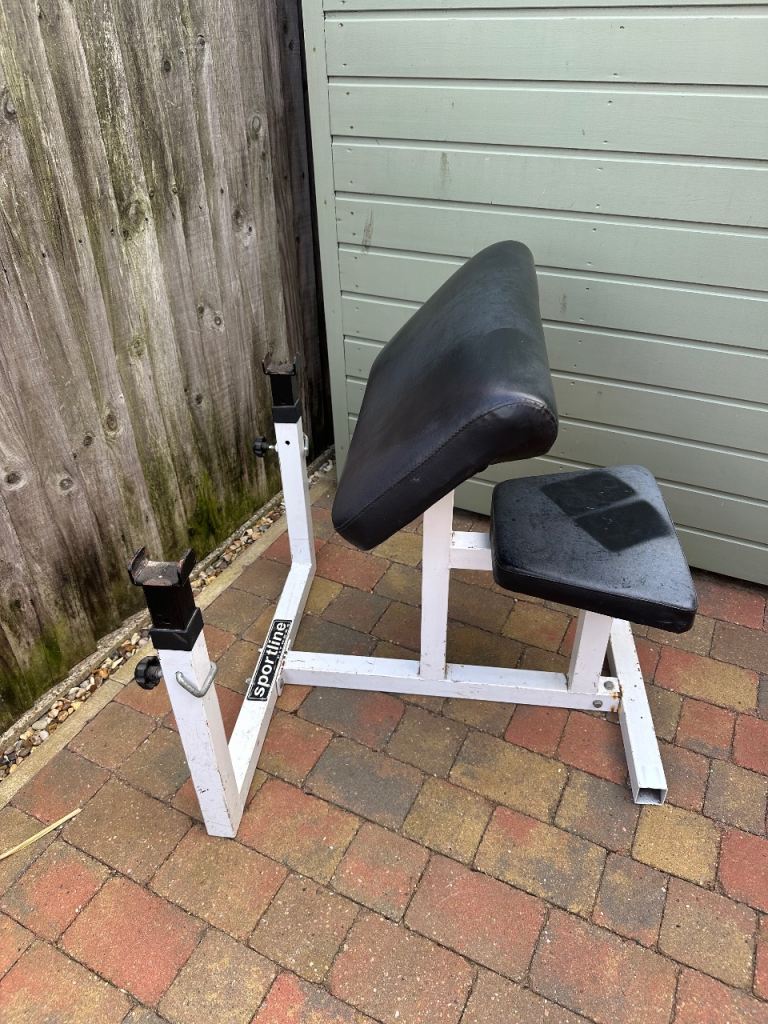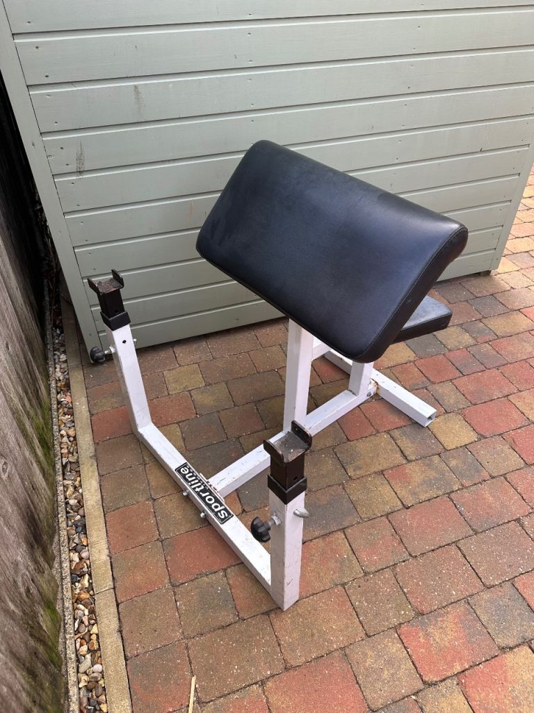 Preacher Curl Bench for sale. This is very well built not one of those cheap Amazon ones. Cost over £250 new.
