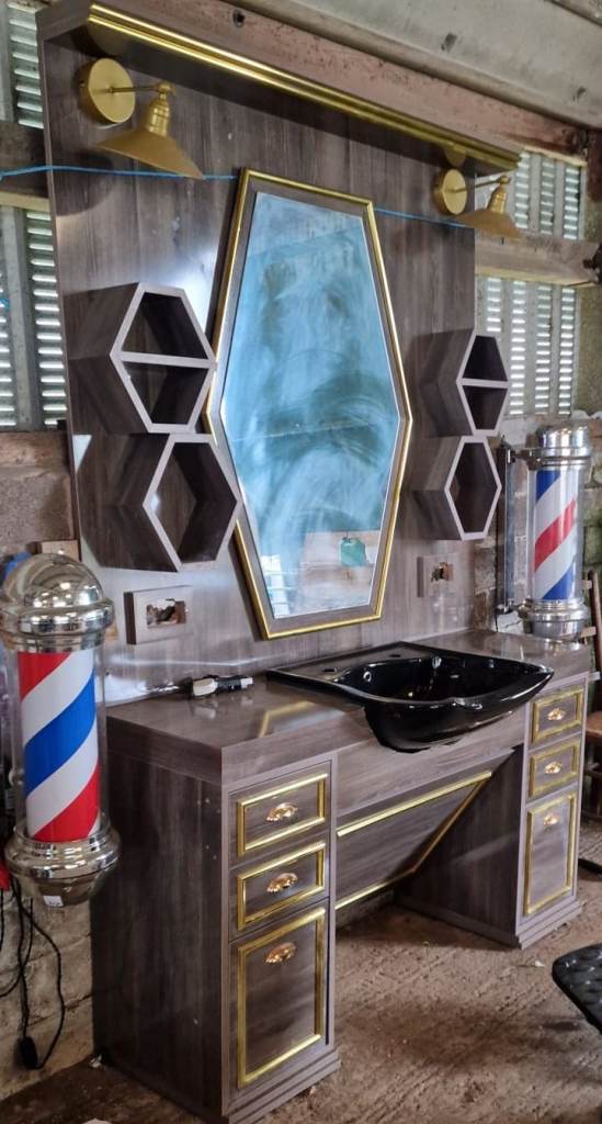 Barbers chair and equipment + signs great for starting out good condition nice set up can deliver for delivery cost everything you see in pictures is available for great price £150