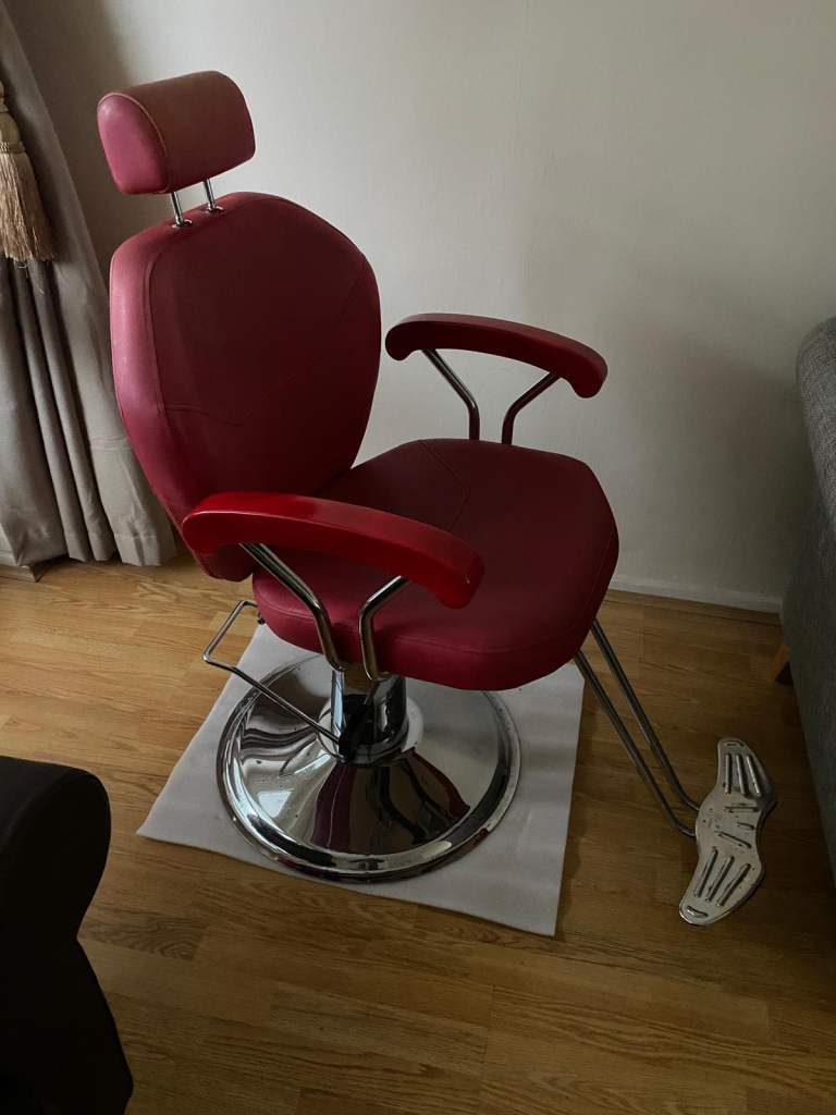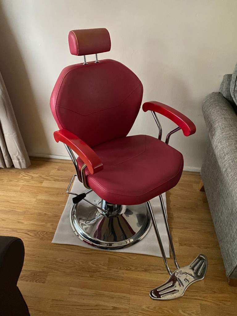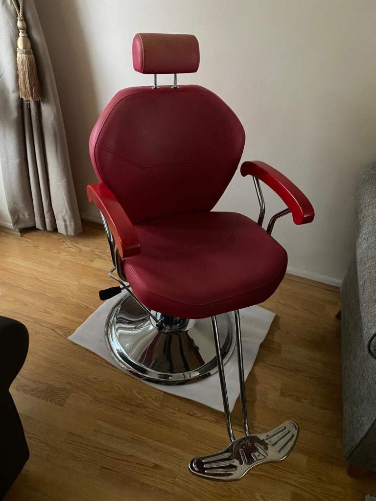 Barber, hairdresser beauty salon professional limited Edition chair red colour used but very good condition fully working order armrest respray same like original red colour not effect for use easy to take any hatchback car cash on collection only