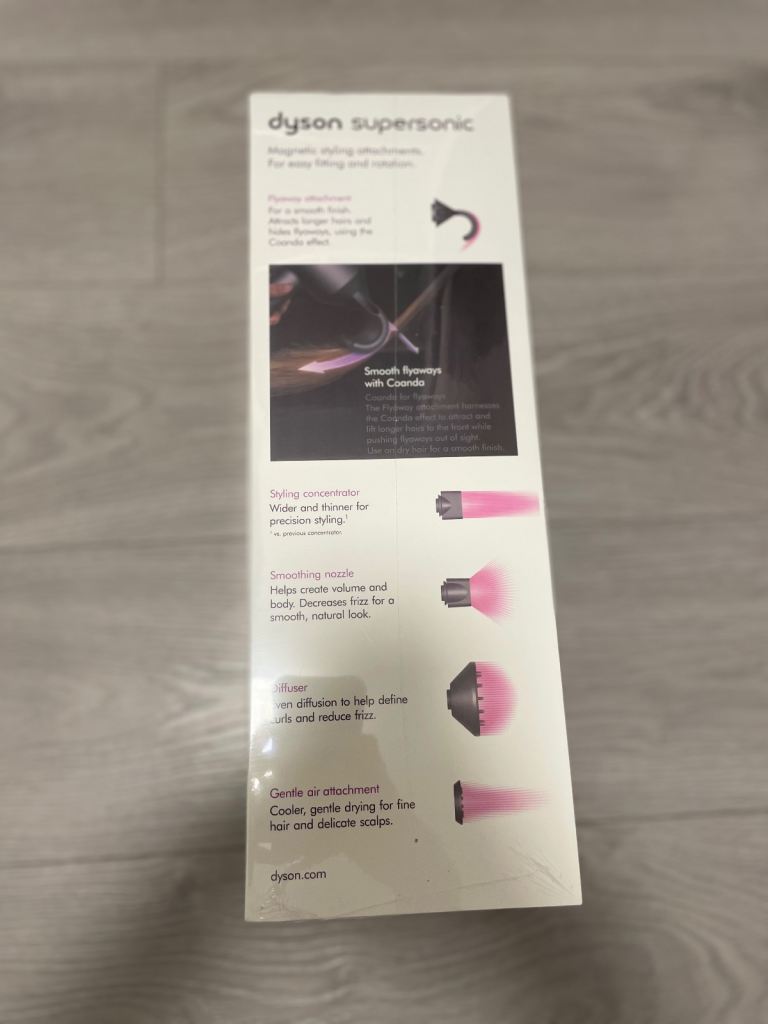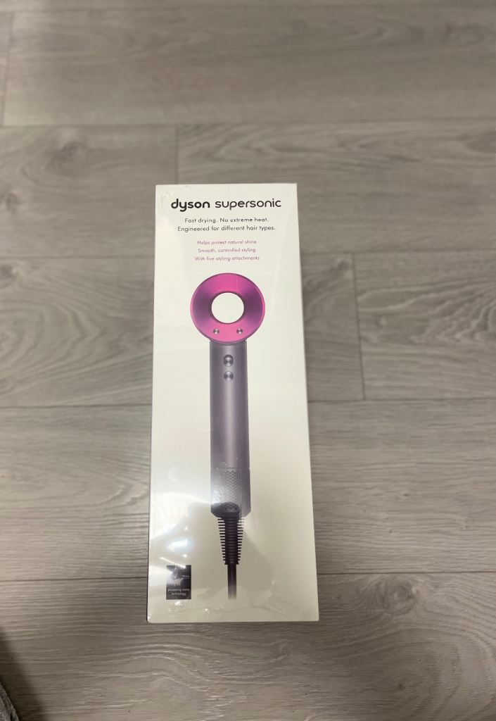 I’m selling a brand new Dyson Supersonic hair dryer in the stylish grey/pink colorway. This is an unused and unopened item, perfect for anyone looking for a high-quality hair dryer at a discounted price.