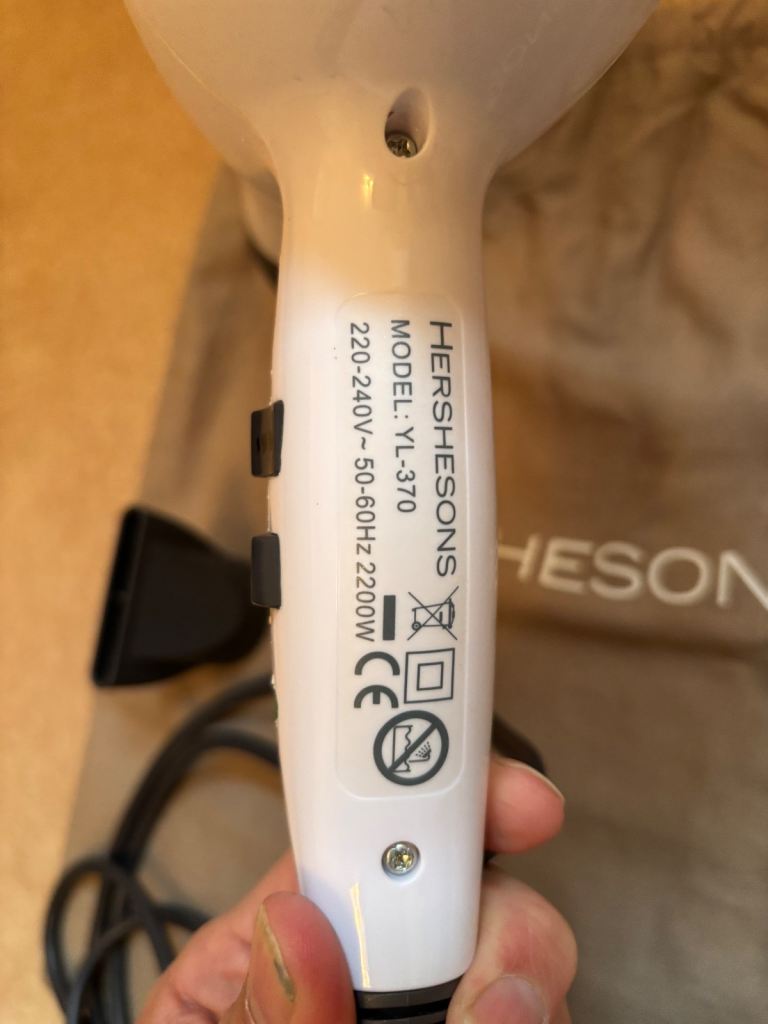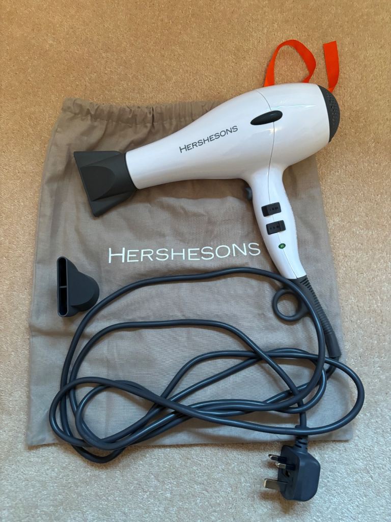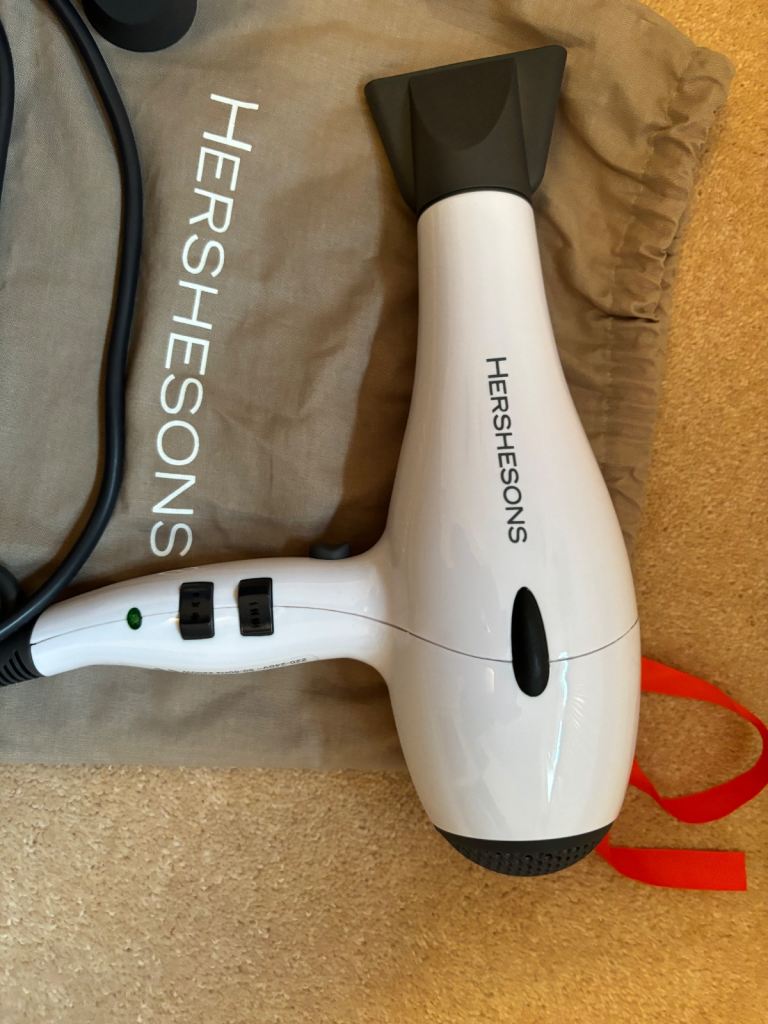 Great condition and only used twice (purchased as a back up hair dryer). Comes with two nozzles and a storage bag.