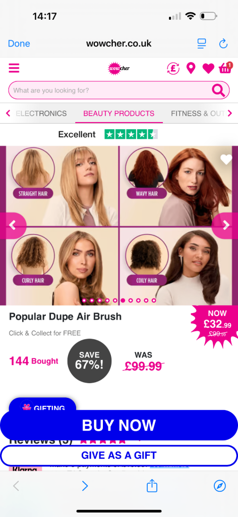 Hot air hair rush and hair straighteners in one, only just bought but don’t like payed £32