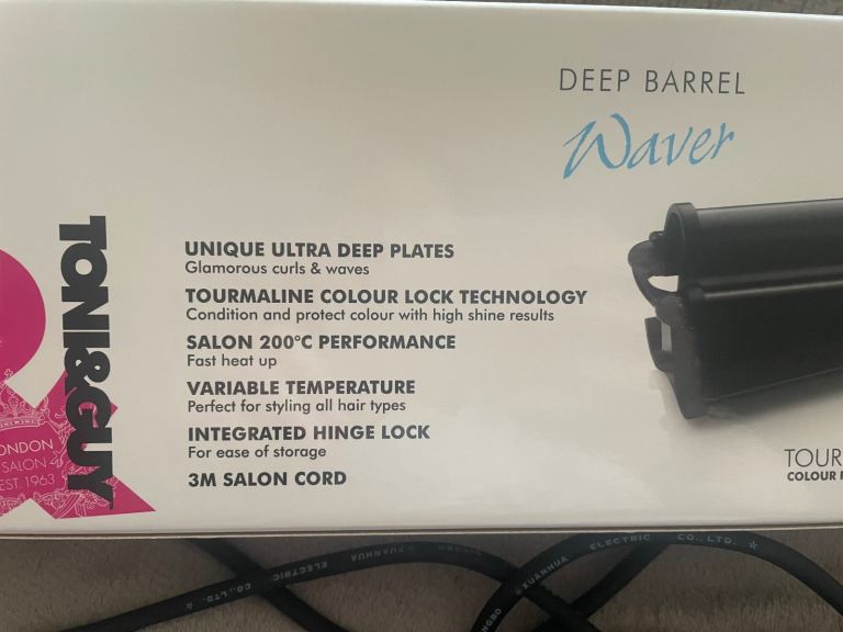 Toni & Guy Deep Barrel Waver in box. Used just a few times before getting hair cut too short to use. In good & working condition. In box.