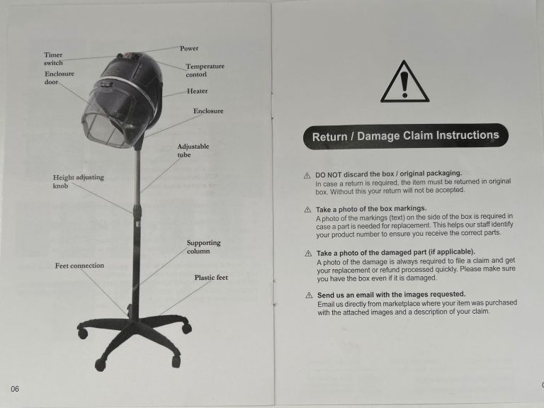 Hair dryer hood - professional hair processor stand hairdryer with timer and temperature control and wheels. Height adjustable.