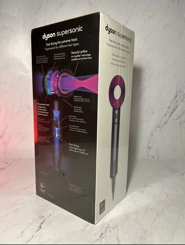 Dyson supersonic hairdryer in pink and black signature colourway for sale, available in black as well.