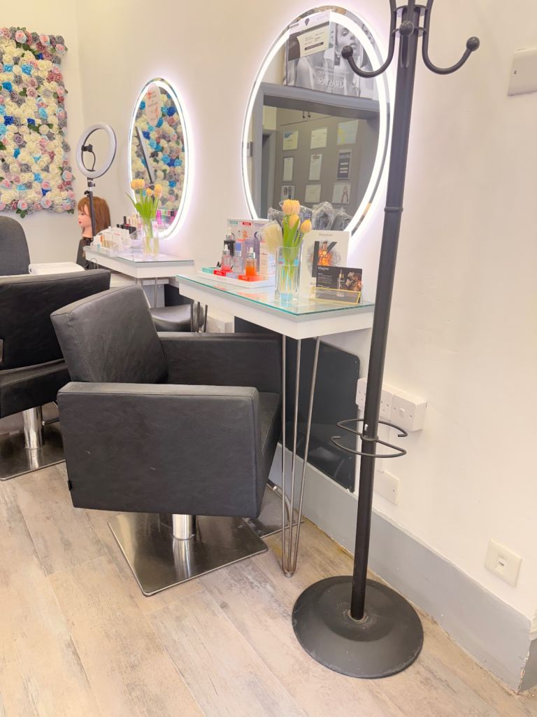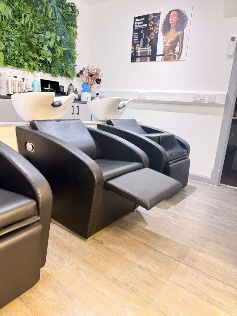 Like New, if all £1000 one thousand ( back wash with tap and pipes, chair, table and mirror and aesthetic bed) also available another section for £250 (chair, table and mirror)