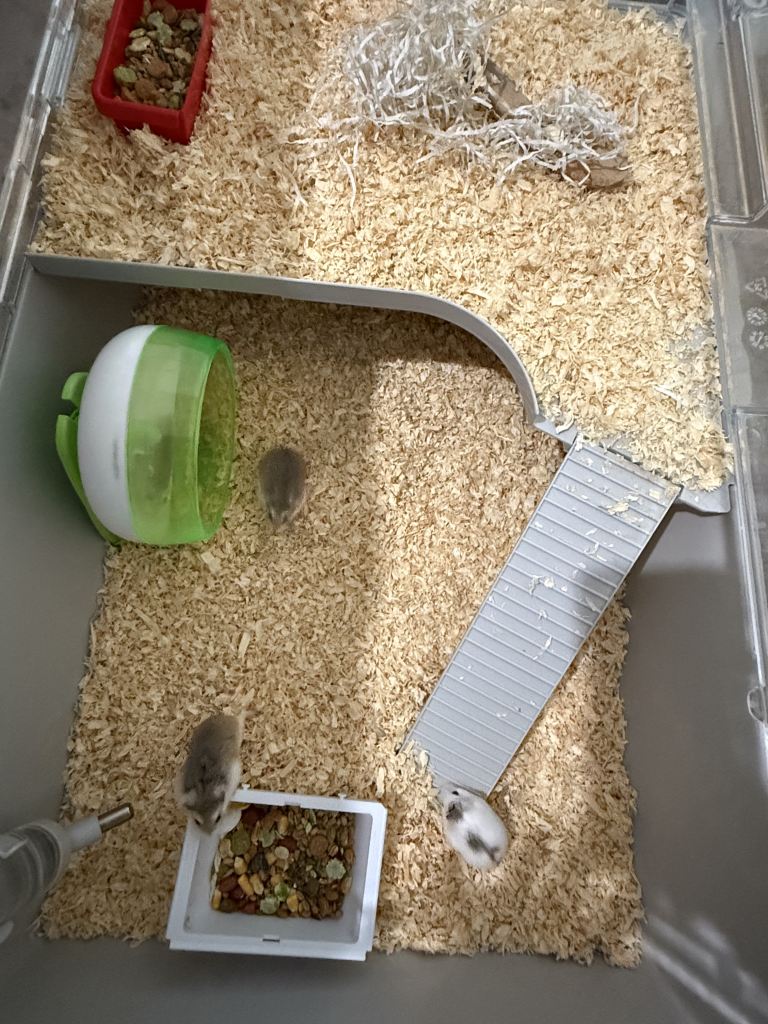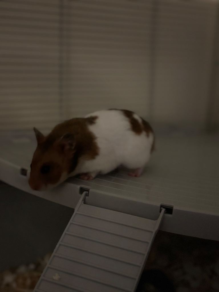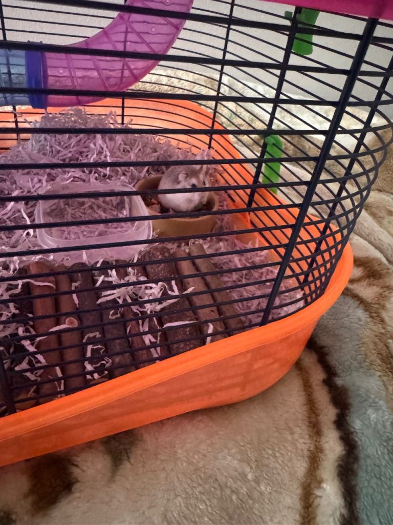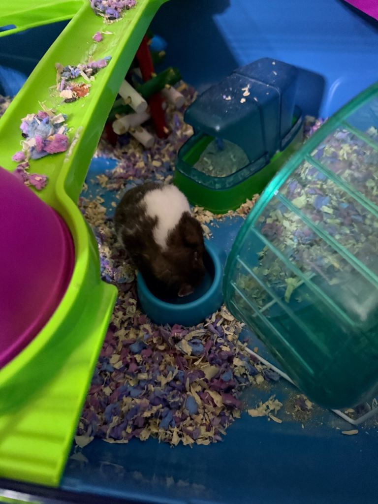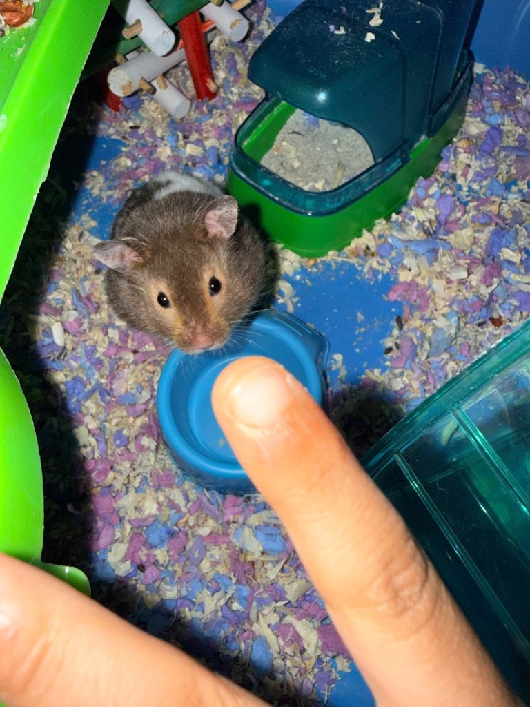 Male hamster, four months old, very healthy potty trained drinks from his water bottle