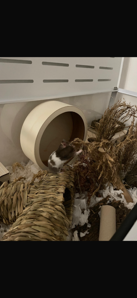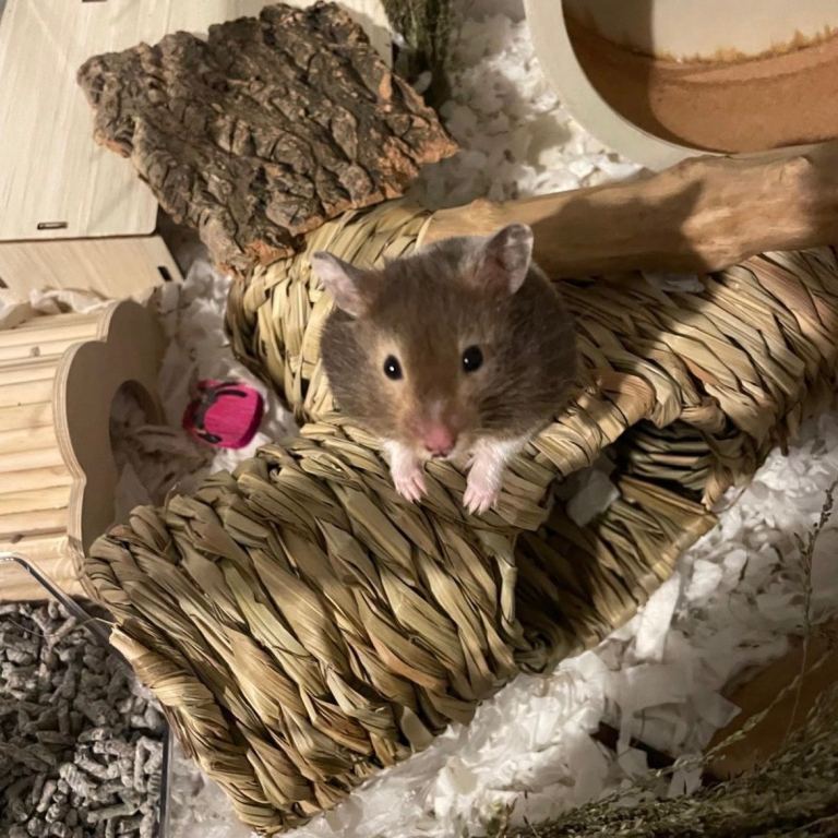 Lovely 4-month-old male Syrian hamster available for rehoming due to a family allergy, so we feel it’s best to find him a safe and caring new home.
