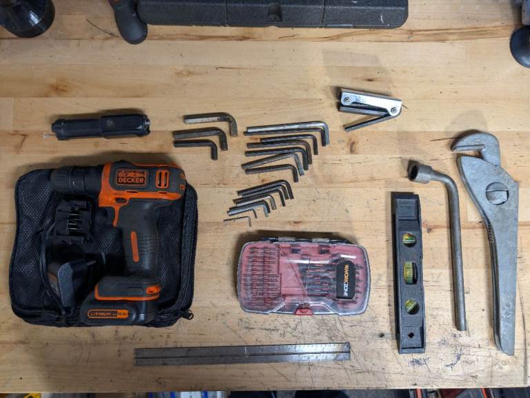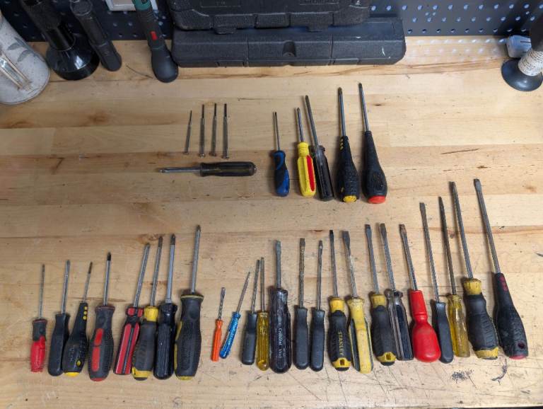 - Screwdrivers (mix of pozidrive, Phillips, flat head and bit driver)