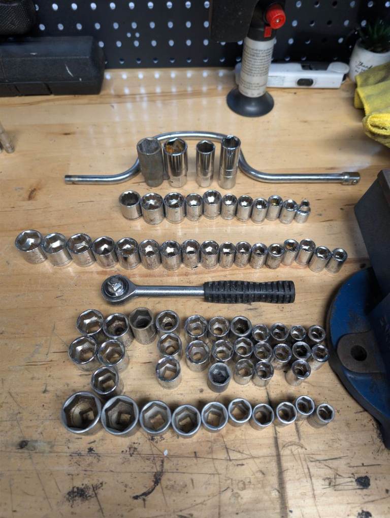 - 1/4" sockets (deep, shallow, metric and SAE), ratchet, extensions and breaker bar
