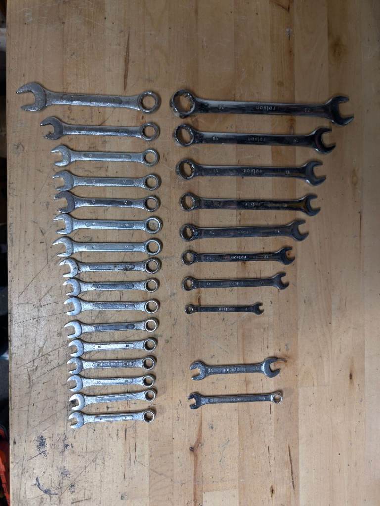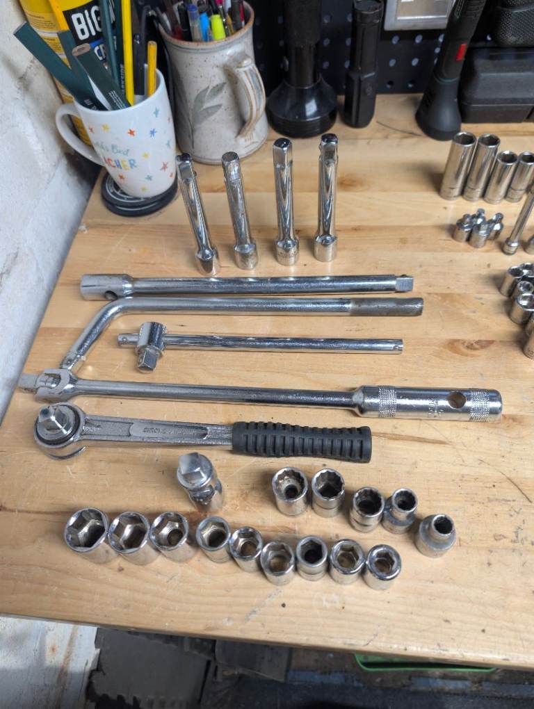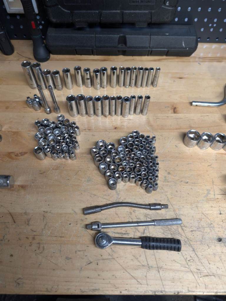 Lots of spanners, screwdrivers, hammers, and a huge selection of sockets and ratchets.