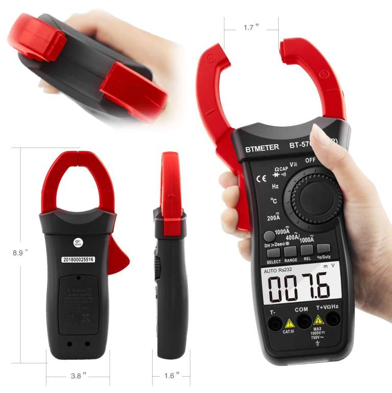 Clamp Multimeter 6000 Counts Auto-Ranging True RMS AC/DC Current Voltage Resistance Capacitance Temperature Tests - Black BT-570N