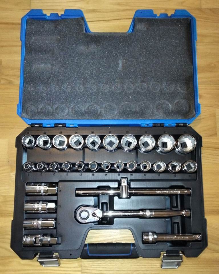 BRAND NEW Draper EXPERT 30 piece 1/2 inch socket set in strong carry box.