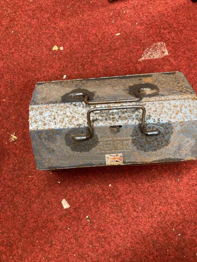 Vintage Talco toolbox with decorating tools buyer collects cash on sale sorry no reductions on this one