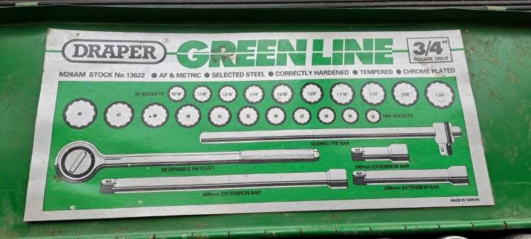 Posting for 14+ yearsDraper Greenline 26 piece socket set 3/4" square drive MM&AF