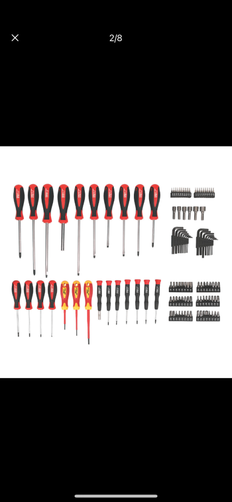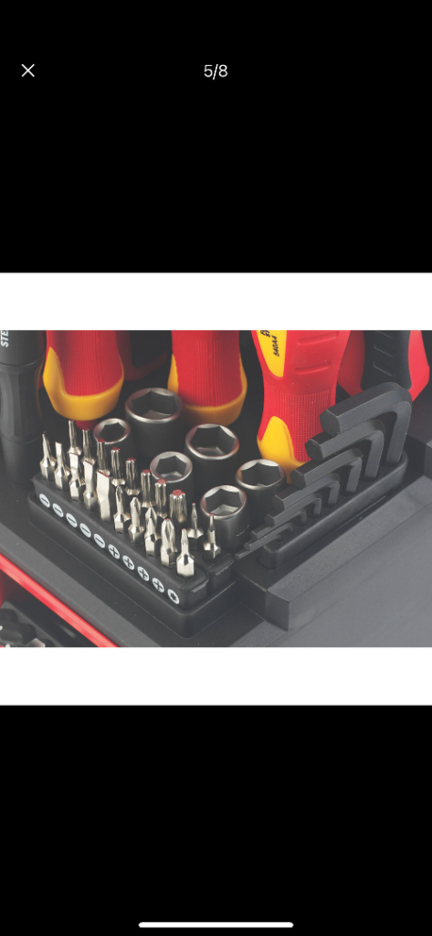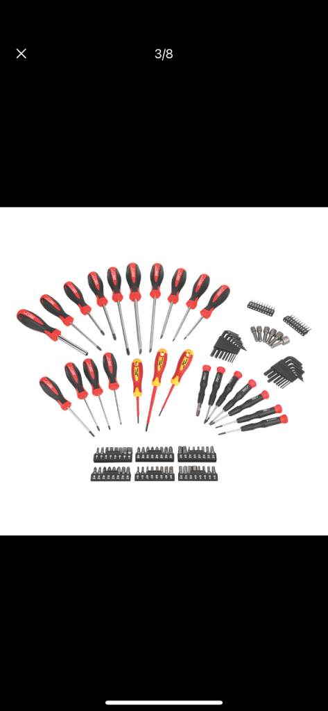 Contents: 13 x CRV screwdrivers, 2 x CRV VDE insulating screwdrivers, 6 x CRV precision screwdrivers, 16 x carbon steel hex keys, 6 x CRV nut driver bits, 48 x 25mm CRV bits, 20 x CRV electro-plated precision bits and precision bits driver.
