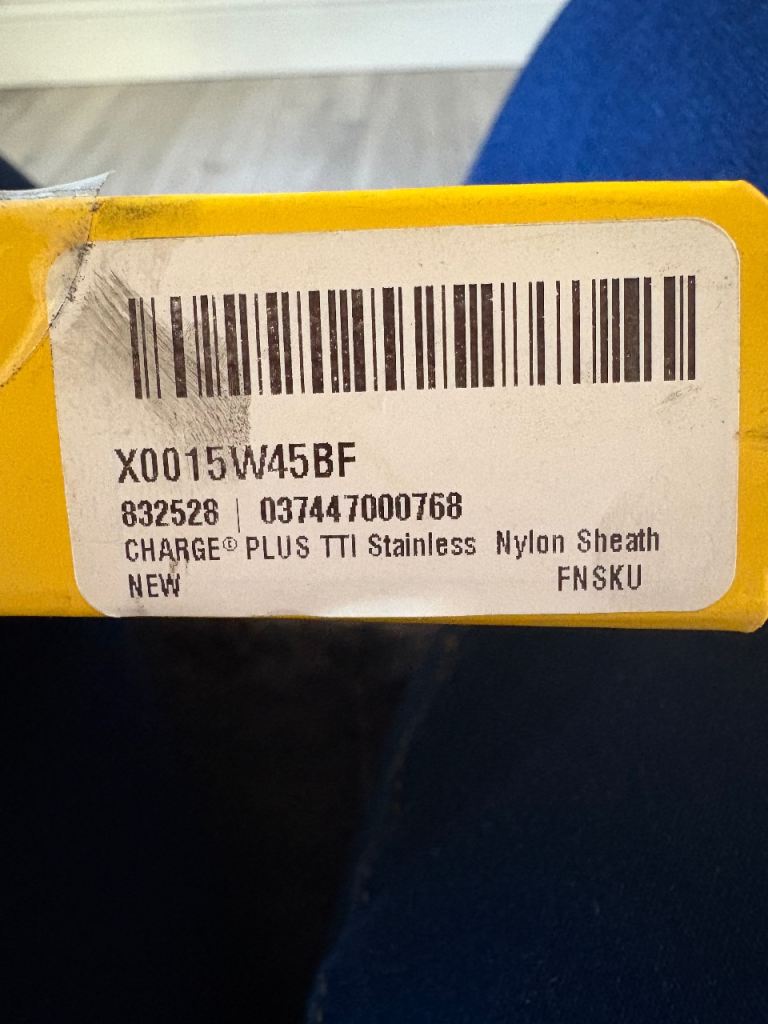 The box states 'Charge Plus TTI Stainless Nylon Sheath NEW'.