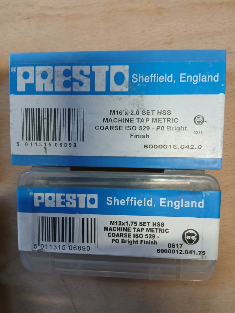 2 boxes of m16x 2.0 tap sets ,also 2 boxes of m12 x 1.75 tap sets job lot £30 OR £10 A SET