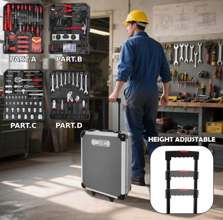 810 Pcs Hand Tools on Casters Wheels for DIY Projects and Daily Repair and Workshop / Garage