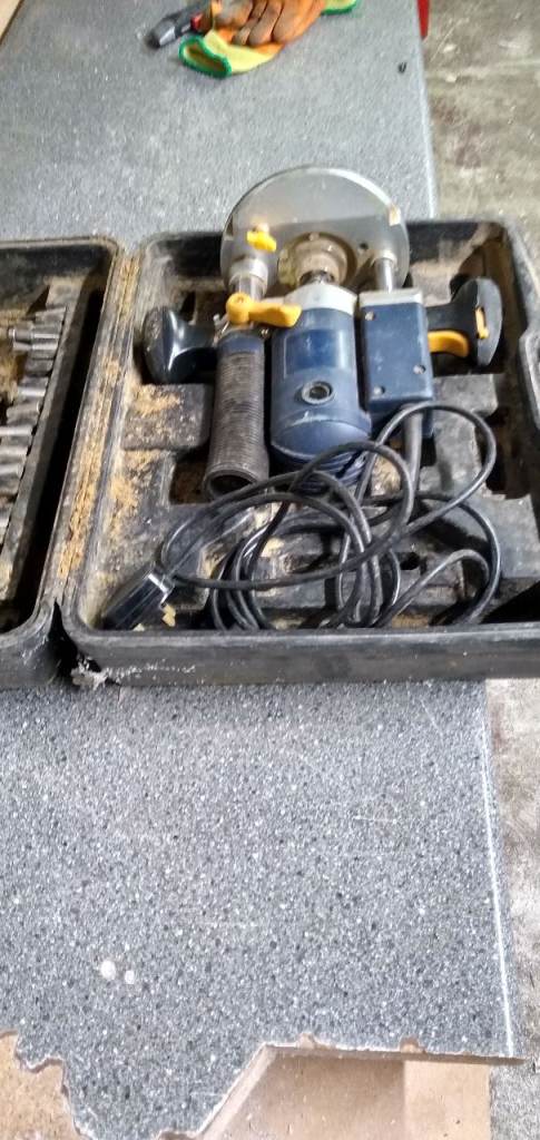 Mains electric plunge router with box and router bits
