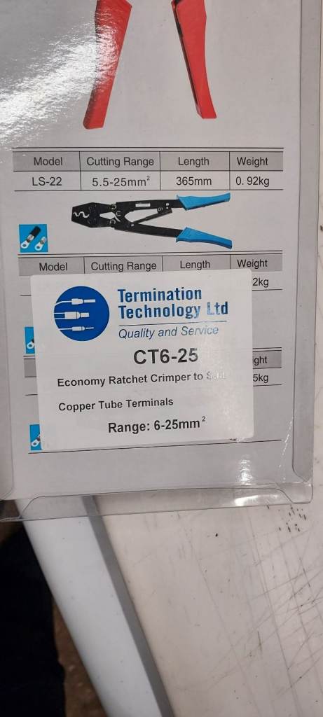 professional ratchet cable crimping tool for crimping copper tubes and aluminium tubes of 6 to 25 millimeters.
