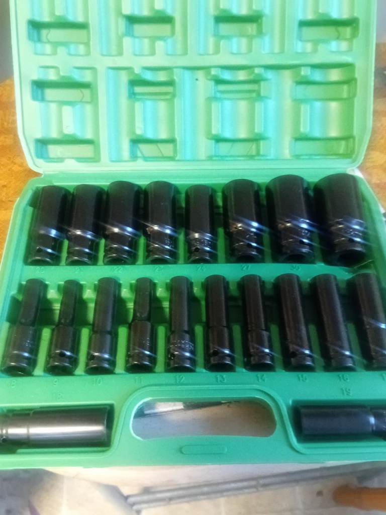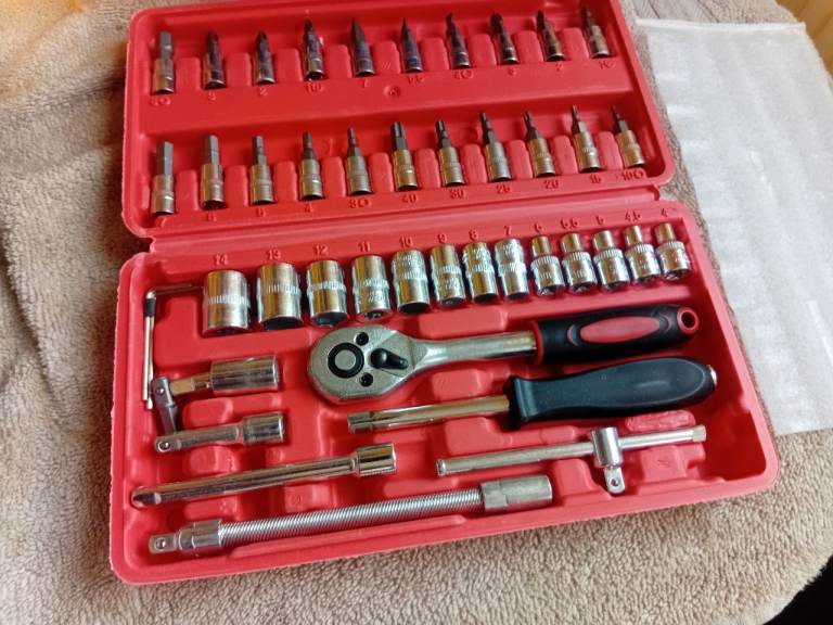 108 multi tool socket set £40 /43 piece magnetic screwdriver set £20 /hss 24 piece drill set £20 /42 piece 1/4 drive socket set £15 /trailer jockey wheel £20 /21v impact wrench 2batt charger gun in box £40 /20 piece impact socket set £20 /car spry gun set 1x 600m and 1x 250m gravity feed and water trap clening tools £40 in box /18v power washer has 2 batt charger and gun 4 settings can use with garden hose or just a pale of water as surply £25 in box ALL TOOLS ARE NEW IN BOX AND UNUSED THESE ARE JUST SOME OFF for more info please call no messages all messages will be IGNORED