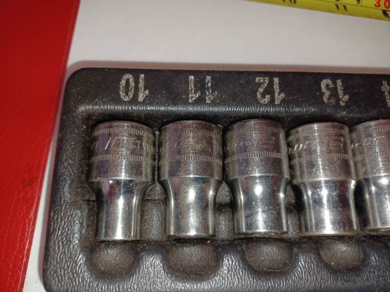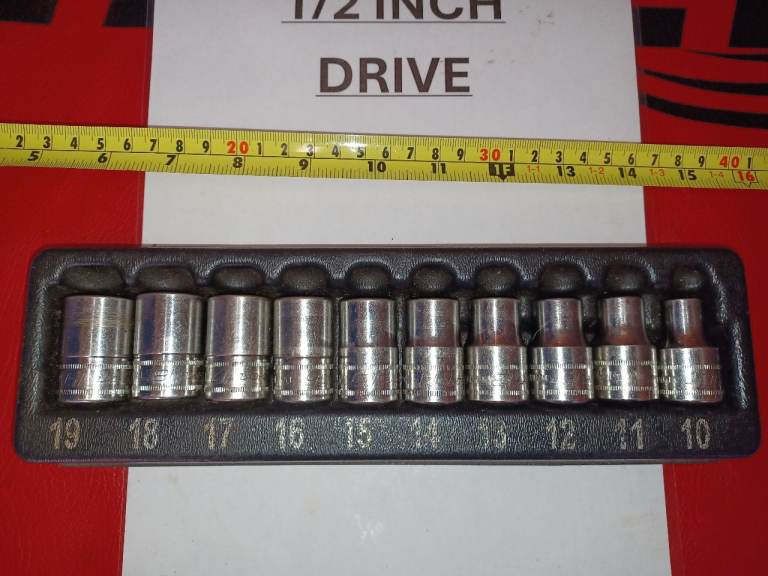 SNAP-ON 1/2" Drive 6-Point Metric 10 mm - 19 mm Flank Drive Shallow Socket set In handy storage tray