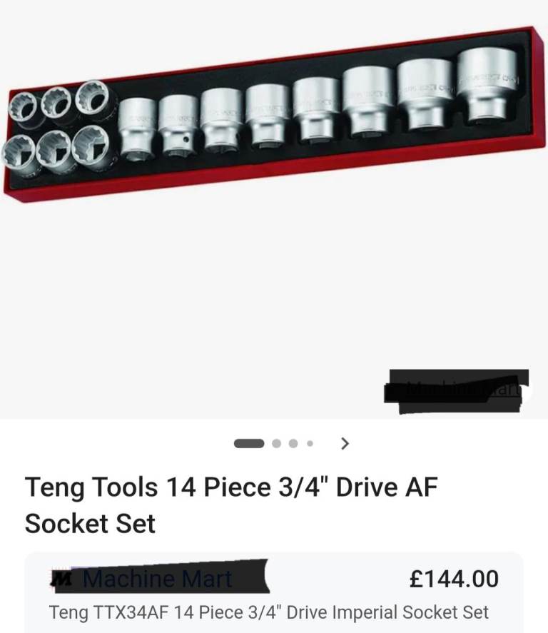 Teng tool 3/4 socket set METRIC not AF as in picture..new prices in first 2 pics so give u an idea of price used but not a lot few marks on some of the sockets but nothing to worrie about looking for £185