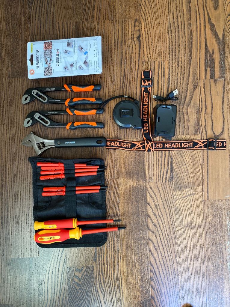 Tool Kit – Insulated Screwdrivers, Pliers, Adjustable Wrench & LED Headlamp