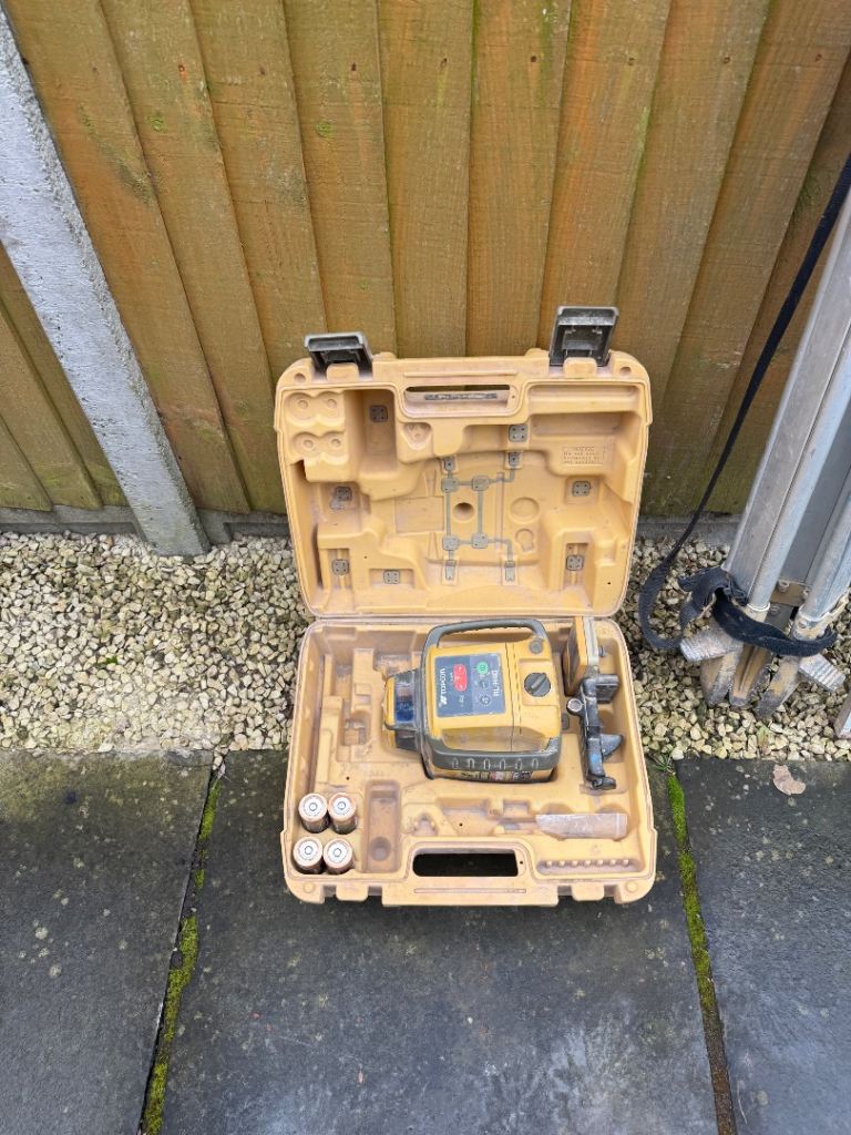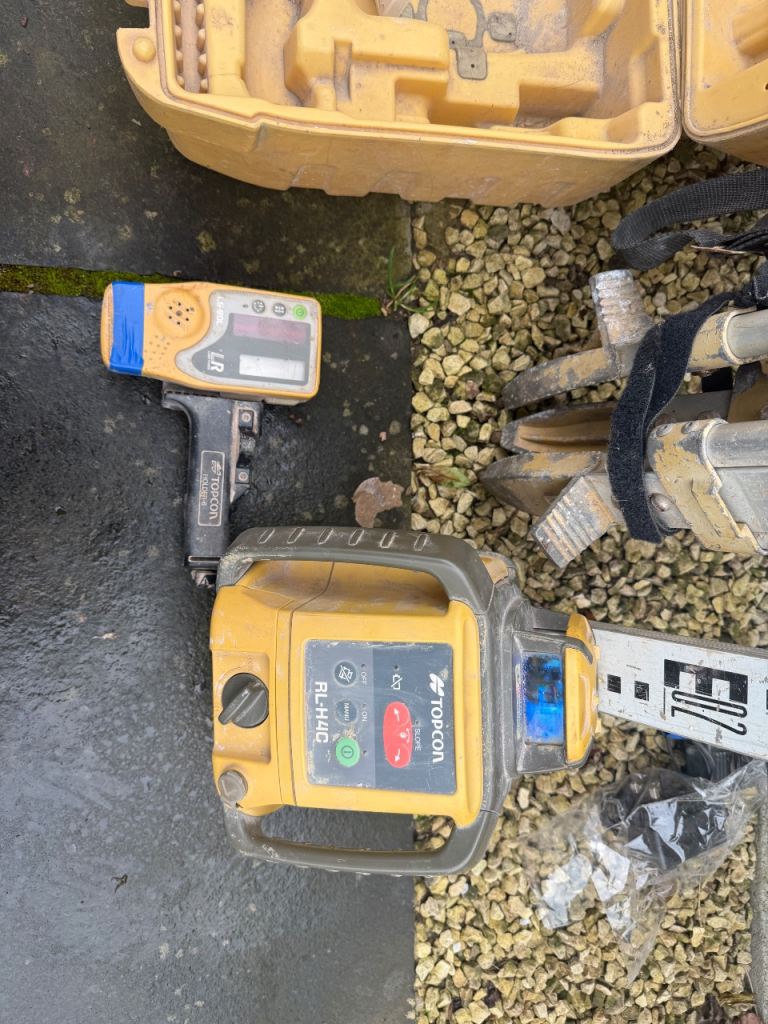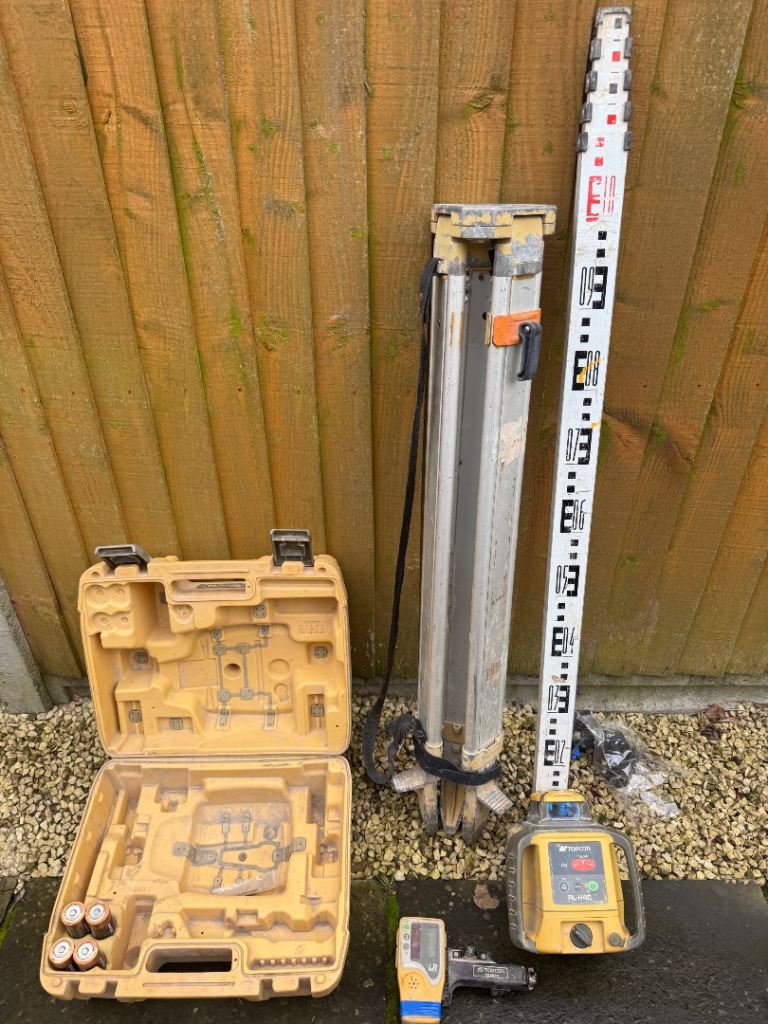 For sale. Topcon RL-H4C Laser level with tripod & telescopic staff. Battery operated. In very good condition and works fine